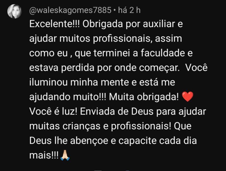 A Marília enfrentou um dos maiores medos da área logo de cara, ela deixou de ser uma “psicopedagoga com certificado guardado” para se tornar uma psicopedagoga realizada. Mesmo diante do desafio de atender autistas nível 3, ela usou a segurança do curso para dominar crises, fechar parcerias e hoje se sente liberta para voar na profissão.